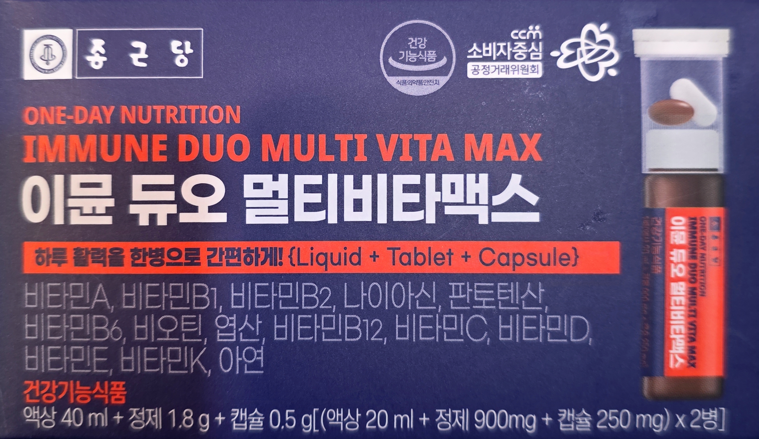 - 용량: 액상 40ml + 정제 1.8g + 캡슐 0.5g