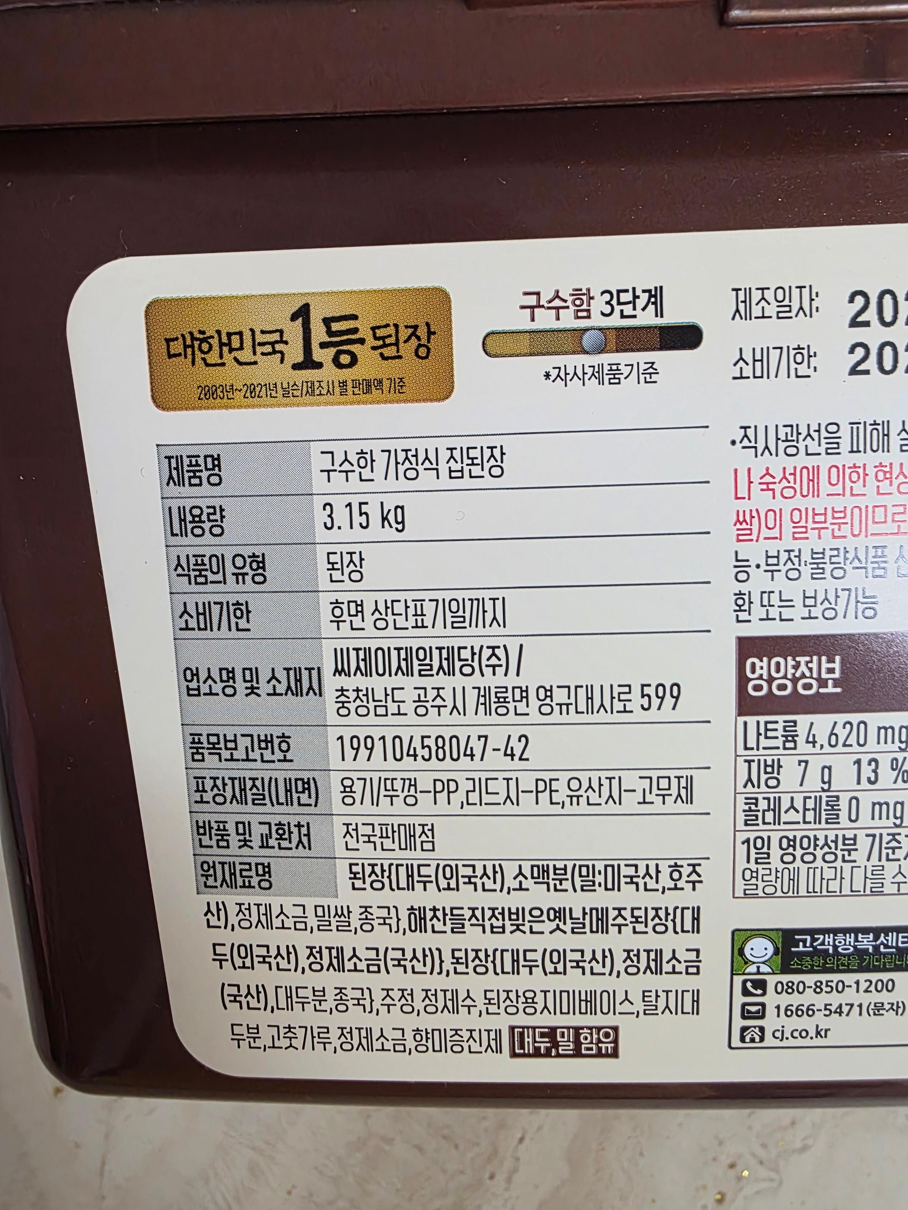 - 제품명: 구수한 가정식 집된장